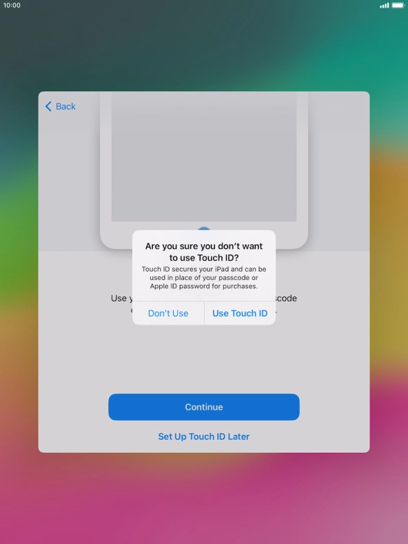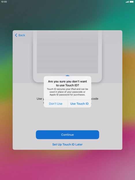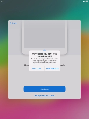 Follow the instructions on the screen to turn on use of Touch ID or press Set Up Touch ID Later.