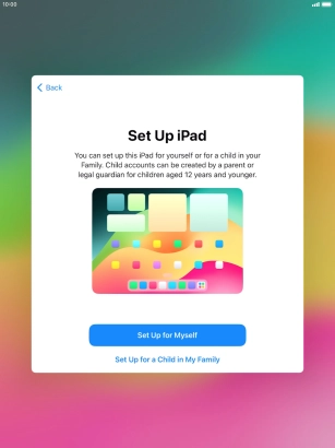 If your tablet will be used by a child below the age of 13, follow the instructions on the screen to set up an Apple ID for the child.