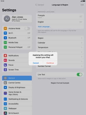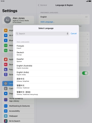 Select language on your Apple iPad (8th Generation) iPadOS 17