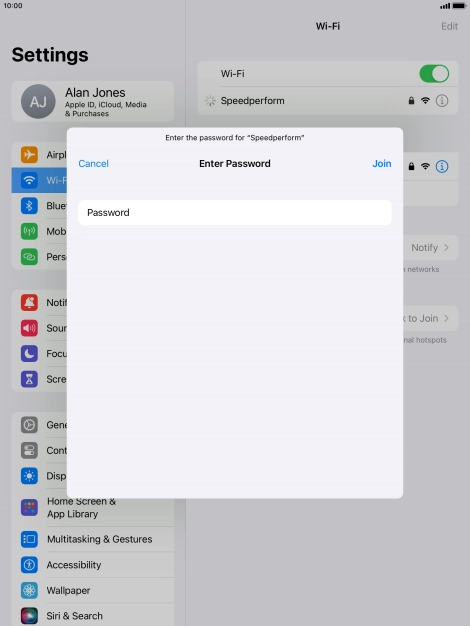 Press the required Wi-Fi network and key in the password for the Wi-Fi network.
