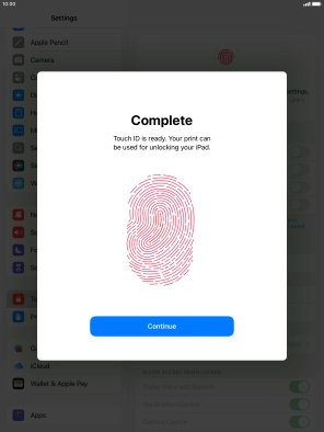 You can set your tablet to use your fingerprint as lock code or to authorise iTunes and App Store purchases. To use Touch ID, you need to turn on the lock code.