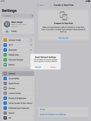 Press Transfer or Reset iPad.