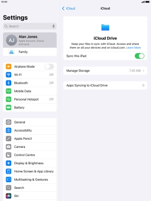 Press the indicator next to "Sync this iPad" to turn the function on or off.