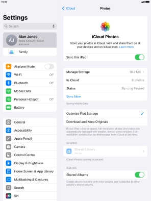 If you turn on the function, all new pictures on your tablet are synchronised with other devices via iCloud.