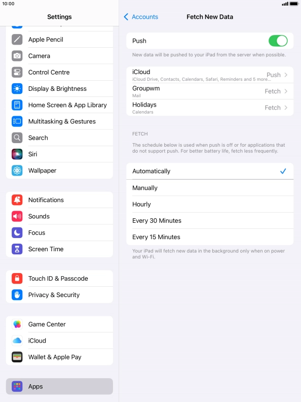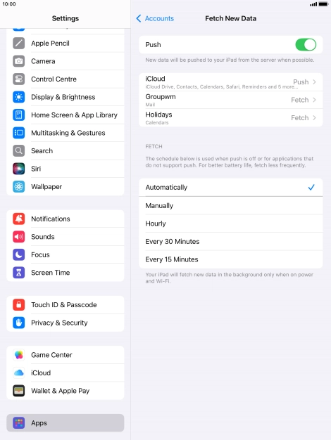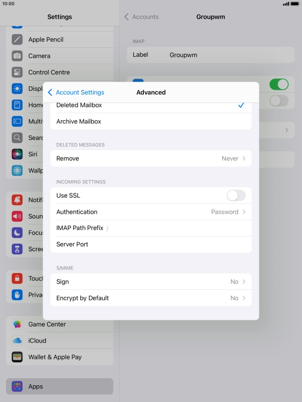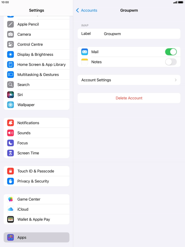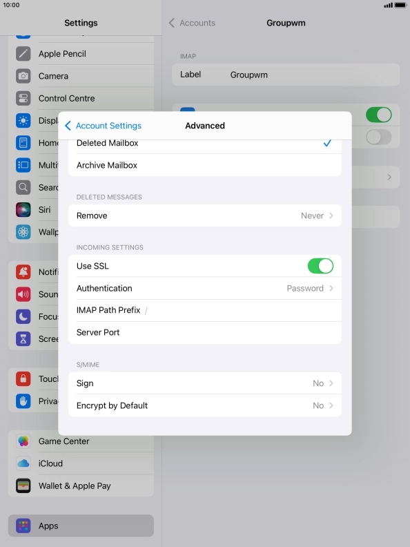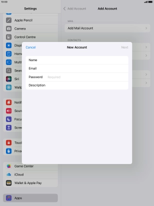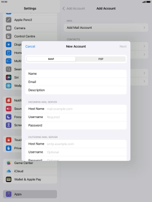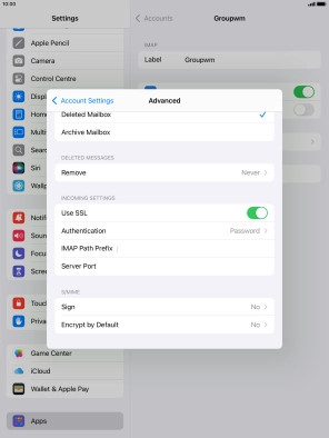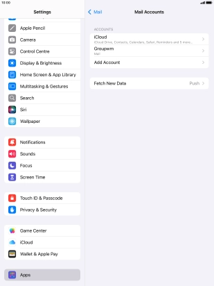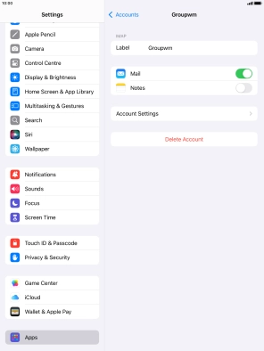 Press the required email account and follow the instructions on the screen to select settings for the specific account.