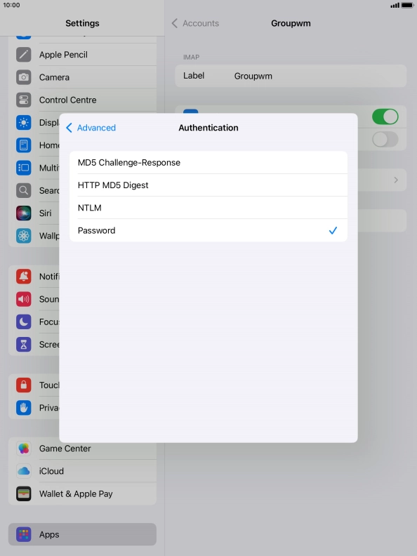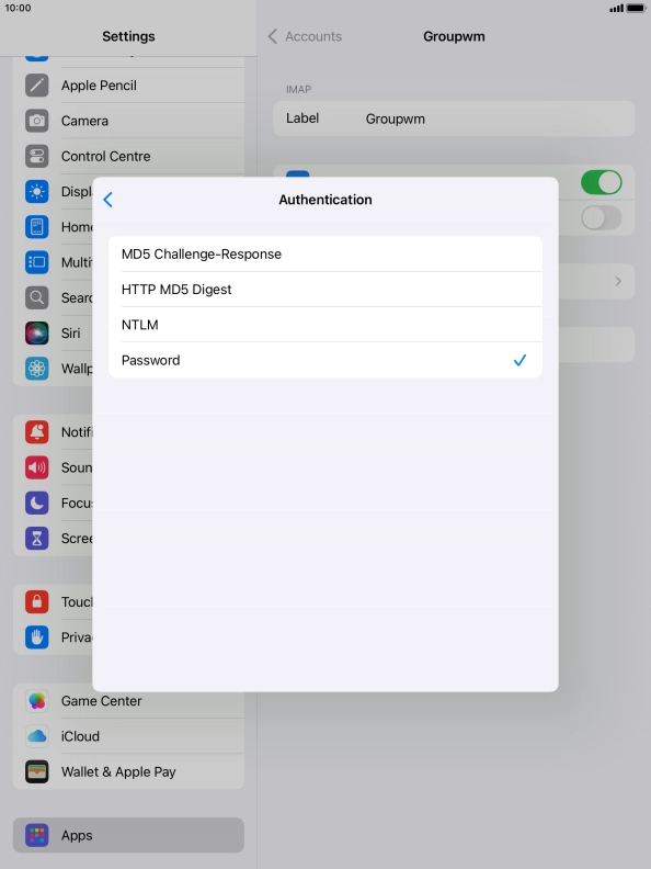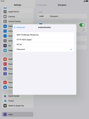 Press Password and key in the password for your email account.