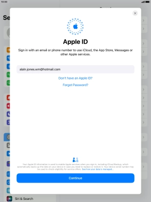 If you don t have an Apple ID, press Don't have an Apple ID? and follow the instructions on the screen to create an Apple ID.