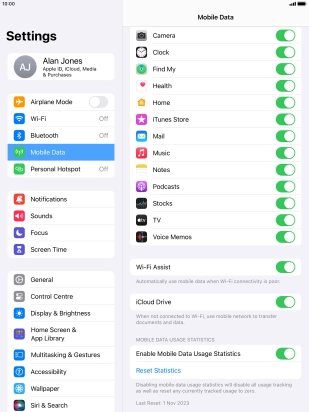 My Apple iPad (9th Generation) iPadOS 17 uses a large amount of mobile data