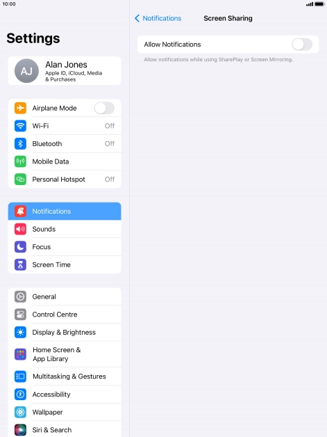 You can turn display of notifications when using SharePlay or Screen Mirroring on or off.