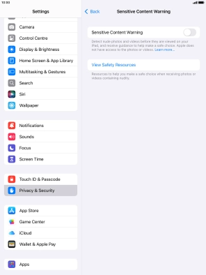 Press the indicator next to "Sensitive Content Warning" to turn the function on or off.
