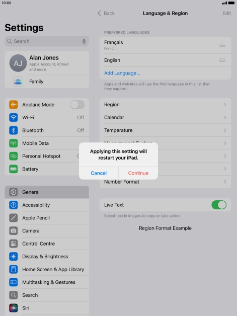 Press Language & Region.