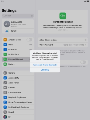 If Wi-Fi is turned on, press Wi-Fi and USB Only.