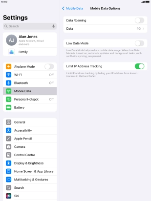 2 Turn data roaming on or off
