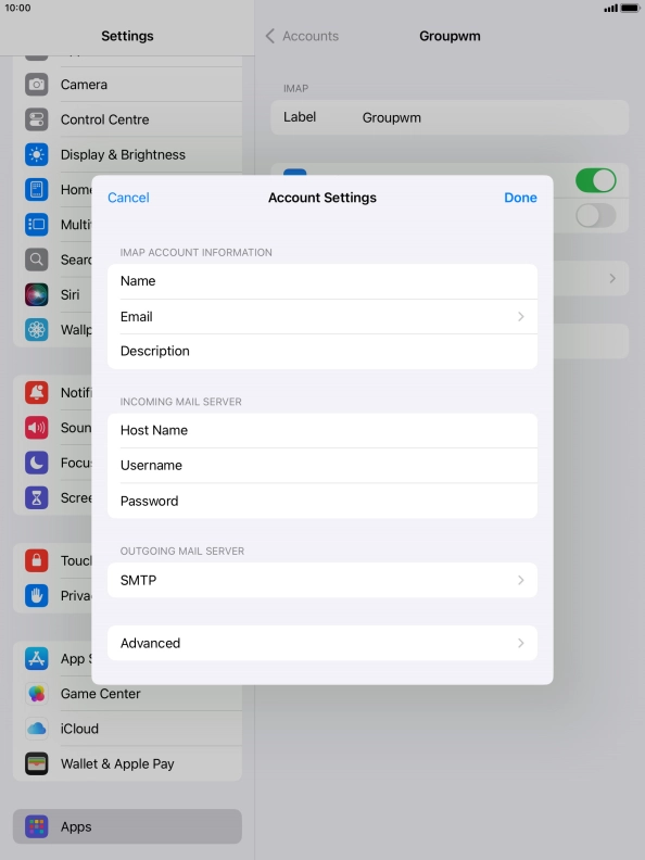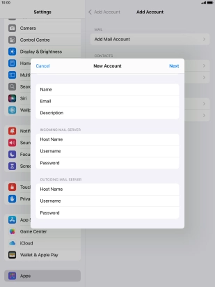 Press Username and key in the username for your email account.