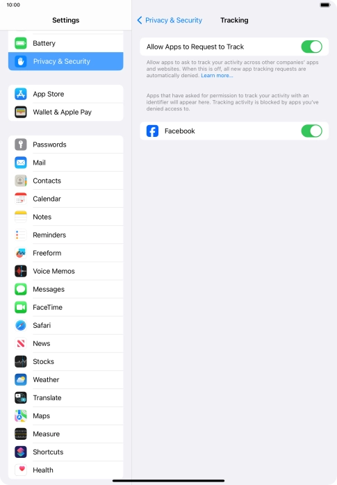 Turn tracking request for downloaded apps on your Apple iPad Air 11 (2024) iPadOS 17 on or off