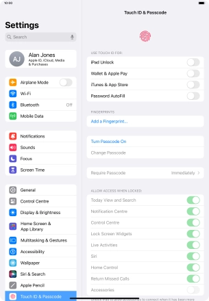 You can use your fingerprint to turn off the lock code, allow access to apps and authorise payments.