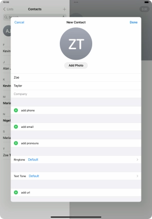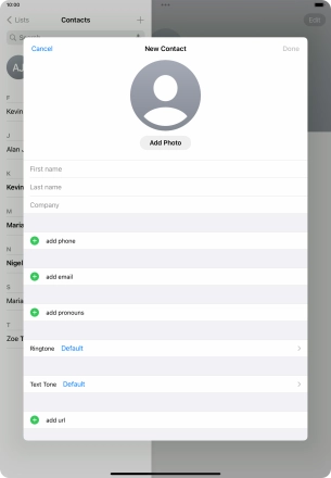 Create contact on your Apple iPad Air 11 (2024) iPadOS 17