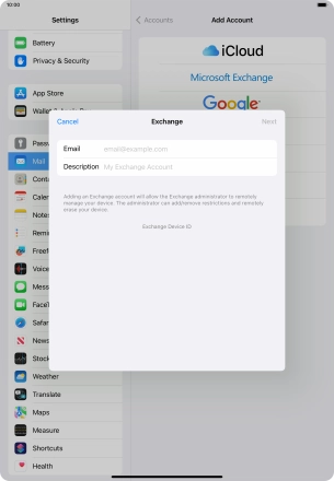 Set up your Apple iPad Air 11 (2024) iPadOS 17 for Exchange email