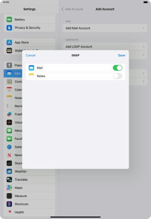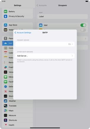 Press the required email account and follow the instructions on the screen to select settings for the specific account.