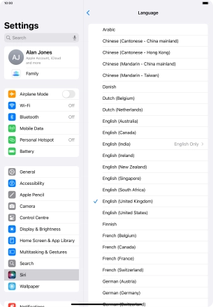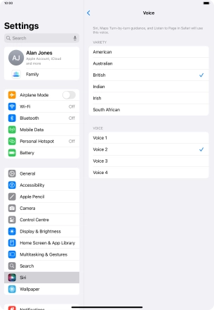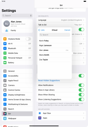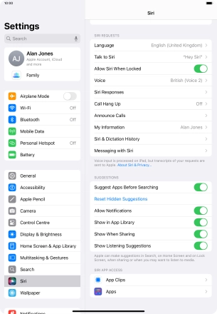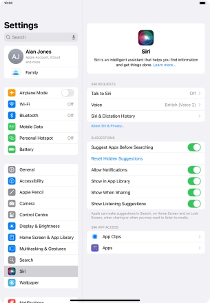 Select Siri settings on your Apple iPad Air 11 (2024) iPadOS 18
