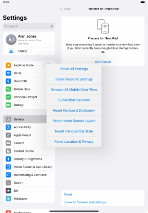 Key in the password for your Apple ID and press Turn Off. Wait a moment while the factory default settings are restored. Follow the instructions on the screen to set up your tablet and prepare it for use.