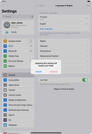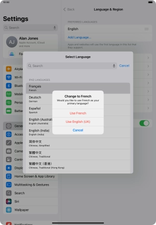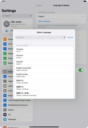 Select language on your Apple iPad Air 11 (2024) iPadOS 18