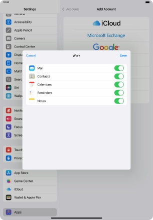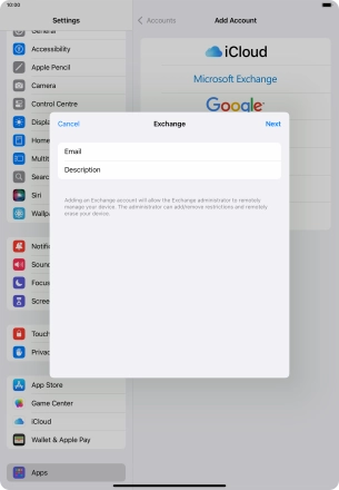 Press the name of the Exchange email account you've just set up.