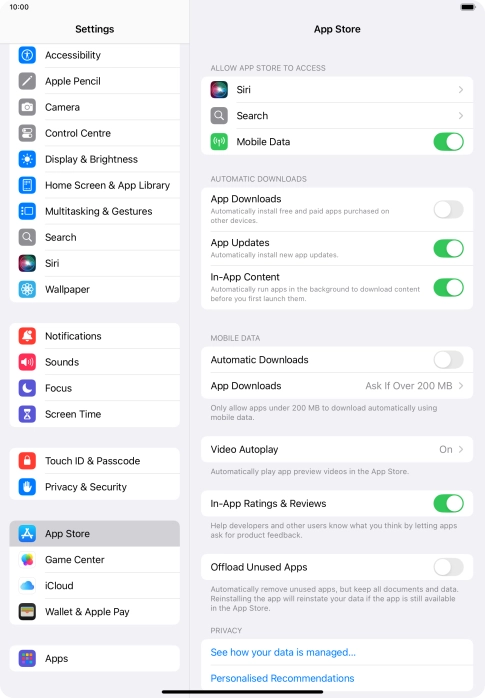 2 Turn automatic synchronisation of apps and app content on or off