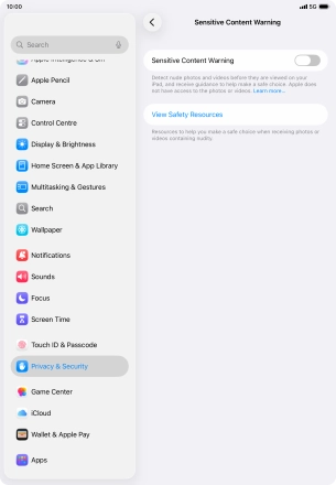 3. Turn Sensitive Content Warning for specific applications on or off