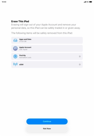 Key in the password for your Apple Account and press Turn Off. Wait a moment while the factory default settings are restored. Follow the instructions on the screen to set up your tablet and prepare it for use.