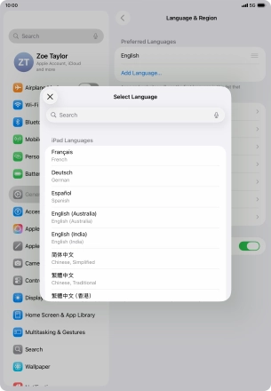 Press Language & Region.
