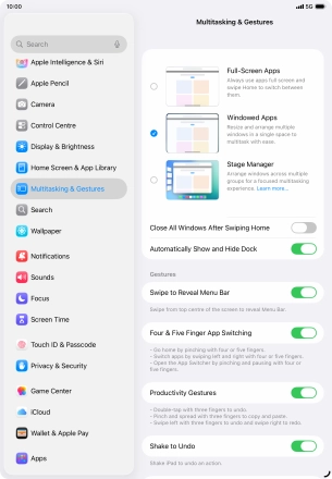 Select settings for multitasking and Dock on your Apple iPad Air 11 (2024) iPadOS 26