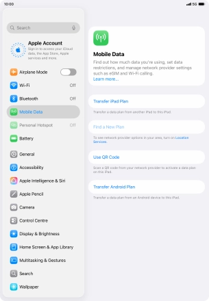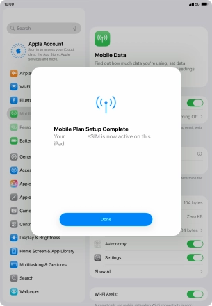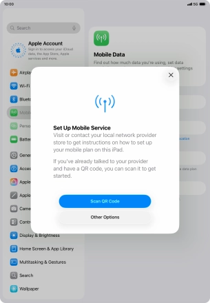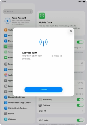 Place the QR code you've received inside the tablet camera frame to scan the code. If you’ve deleted your eSIM, you can re-add it using your existing QR code. If you’re having problems, see our FAQ.