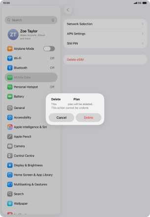 Delete eSIM on your Apple iPad Air 11 (2024) iPadOS 26