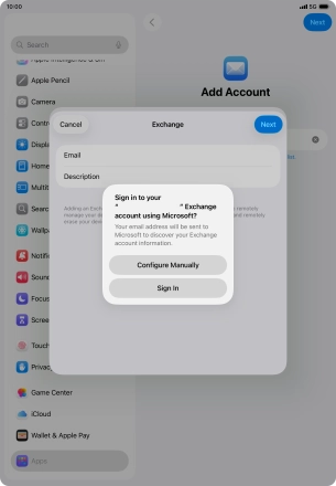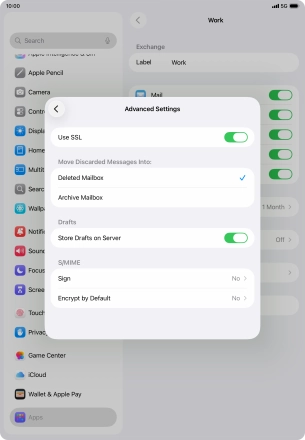 Press the required email account and follow the instructions on the screen to select settings for the specific account.
