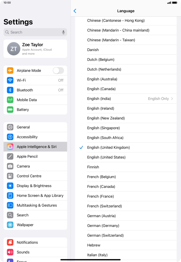 Select Siri settings on your Apple iPad Air 11 (M3) (2025) iPadOS 18