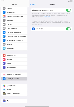 Press the indicator next to "Allow Apps to Request to Track" to turn the function on or off.