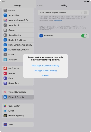 Press the indicators next to the required apps to turn tracking request for each app on or off.