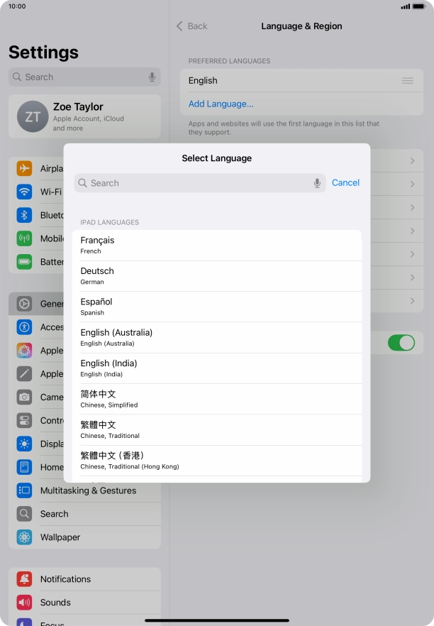 To subsequently select another language as the default language, press the move icon next to the required language and drag it to the top of the list.