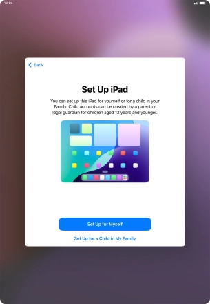 If your tablet will be used by a child below the age of 13, follow the instructions on the screen to set up an Apple ID for the child.