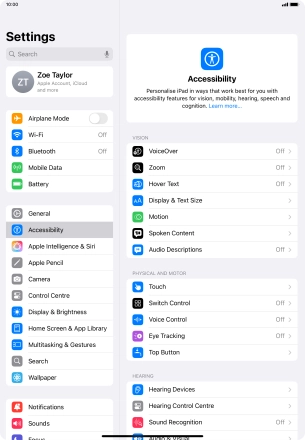 You can select different settings for tablet interaction control, e.g. AssistiveTouch, Voice Control and Eye Tracking making it easier to navigate your tablet.