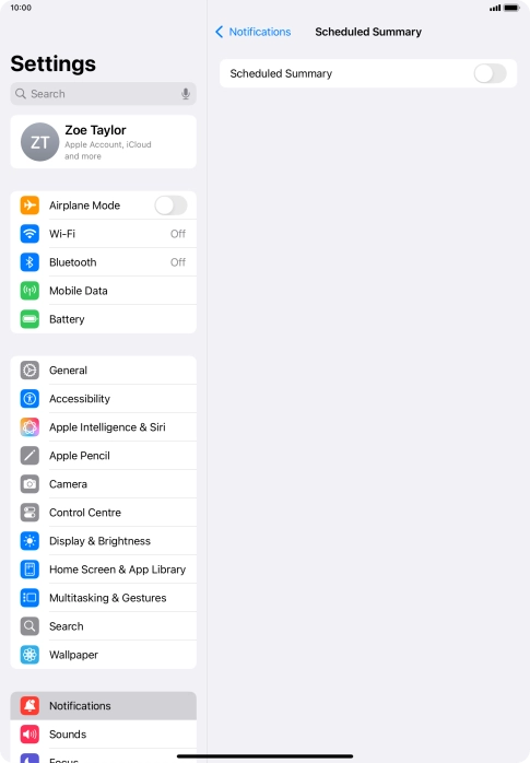 Press the indicator next to "Scheduled Summary" to turn on the function and follow the instructions on the screen to set the notification summary.