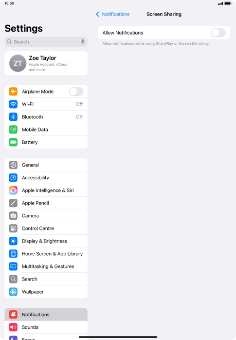 You can turn display of notifications when using SharePlay or Screen Mirroring on or off.