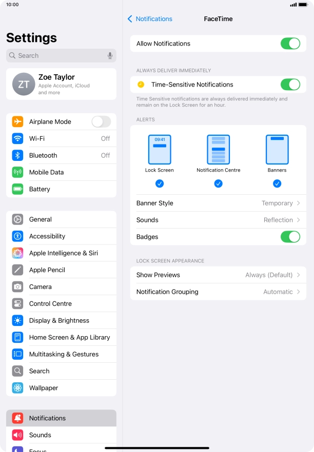 Press the indicator next to "Time-Sensitive Notifications" to turn the function on or off.