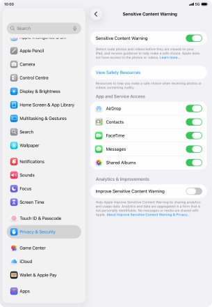 3. Turn Sensitive Content Warning for specific applications on or off