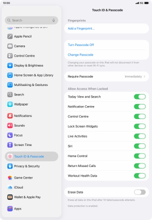 Turn use of lock code on your Apple iPad Air 11 (M3) (2025) iPadOS 26 on or off