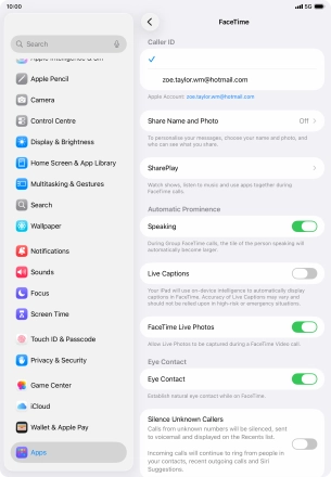 Press the indicator next to "FaceTime" to turn the function on or off.