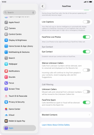 Press the required setting below "Allow FaceTime to Access" and follow the instructions on the screen to allow access for specific apps and functions.