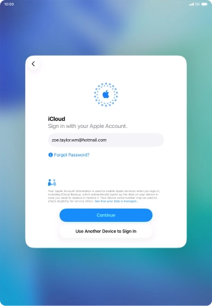 When this screen is displayed, your tablet is ready to restore content from an iCloud backup.