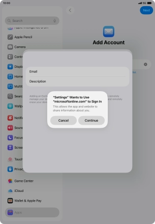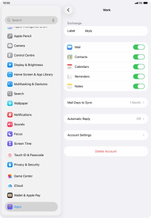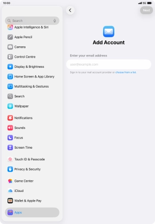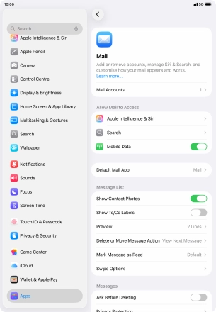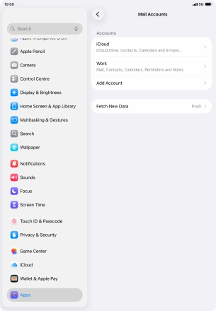 Press the required email account and follow the instructions on the screen to select settings for the specific account.